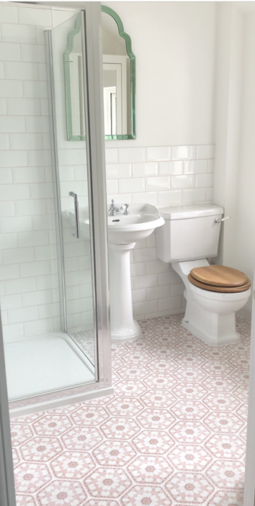 Here is our most recent bathroom refurbishment, designed and installed completley in house. We moved stud work to create much needed additional space. The client has a great sense of style and chose hexagonal tiles which create real impact. Sanitaryware is a Heritage range sourced from our local supplier.